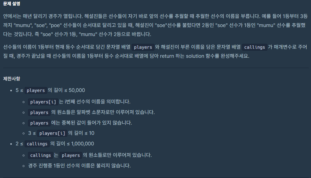 fun solution(players: Array<String>, callings: Array<String>): Array<String> {