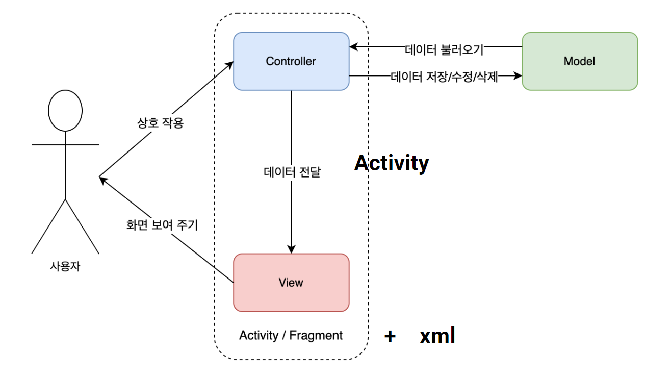 -Activity가 view와 controller를 동시에 담당